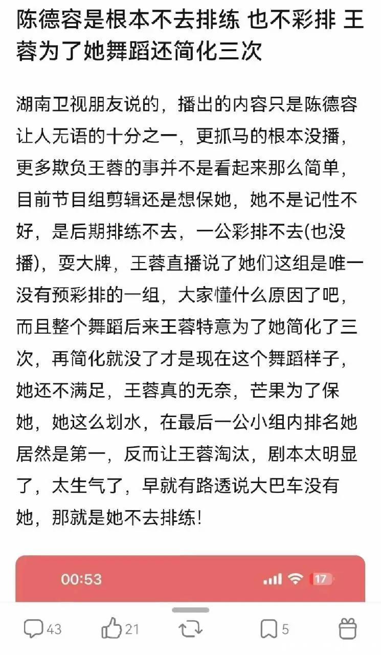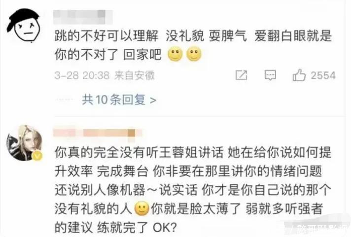 节目组惯着她,观众可不惯着,直接扒出她不彩排、不排练、简化舞蹈迫使王蓉配合她、划水等罪名。