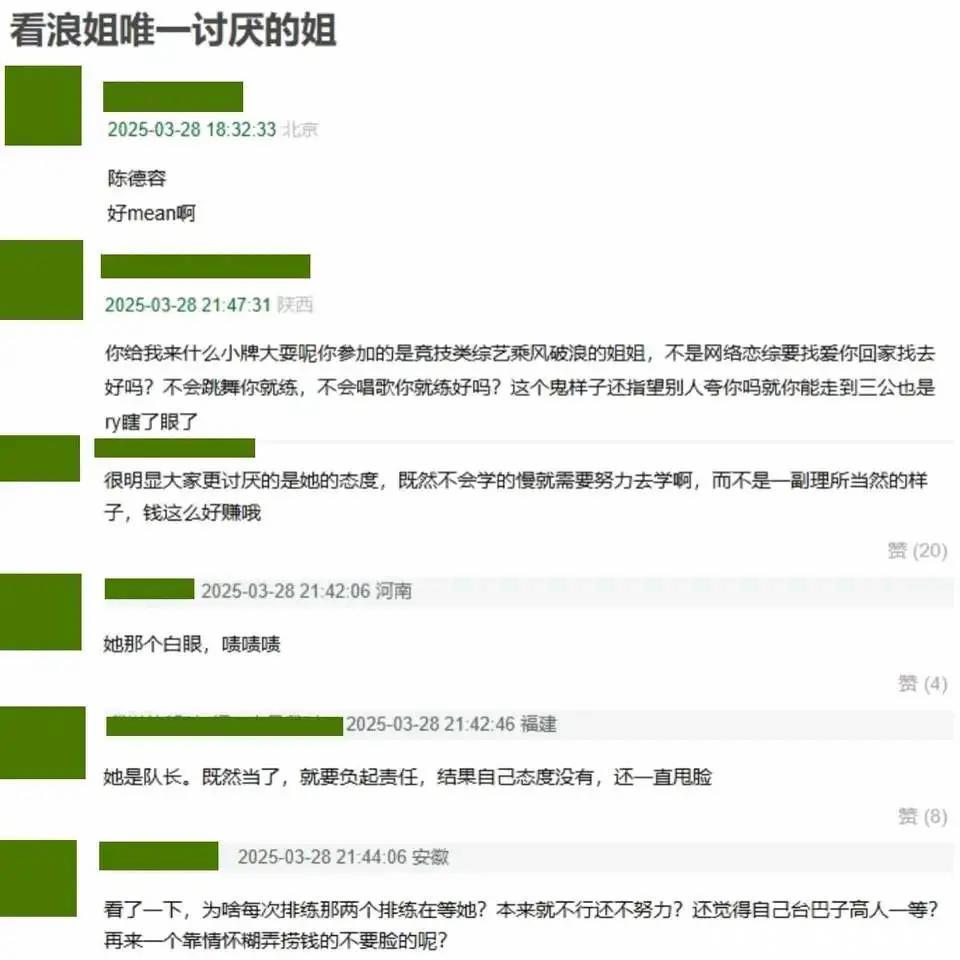 一个原本应该宣扬30+女性展现别样魅力的舞台,变成勾心斗角的后宫大戏,初代琼瑶女神陈德容排练摆烂气哭队友,吴宣仪孟美岐昔日好姐妹反目成仇、隔空互呛,实力派王蓉惨遭一轮游,叶童险被淘汰……台下的戏码比台上都精彩,浪姐化身狼姐。