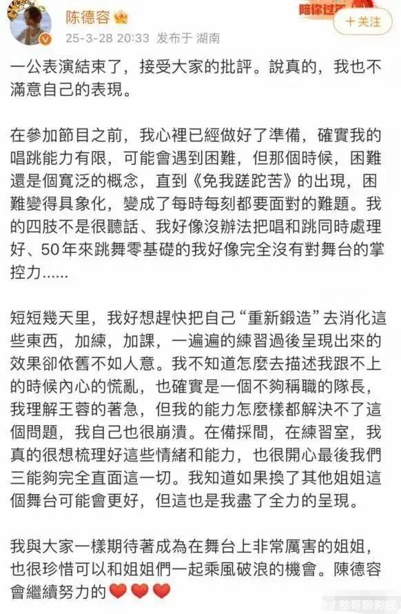 陈德容后采的时候提到此事还眼眶含泪,控诉她们不理解零基础的人有多么困难。
